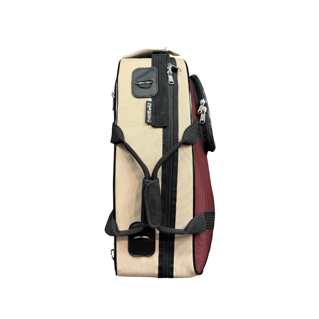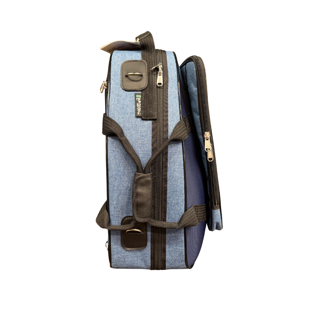 with sheet music bag fixed with detachable zipper system with extra pocket and below pocket (extra cost)